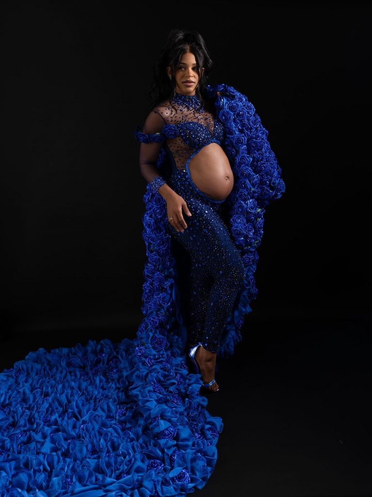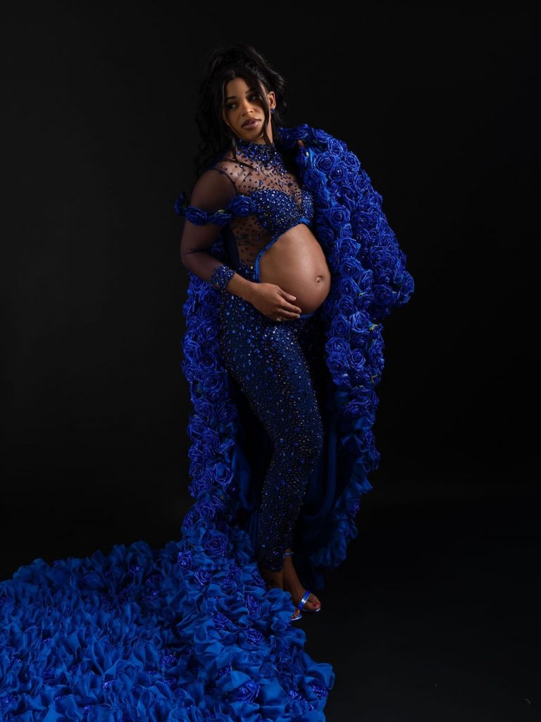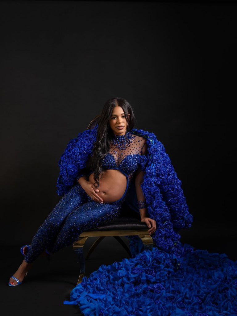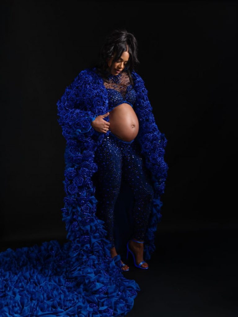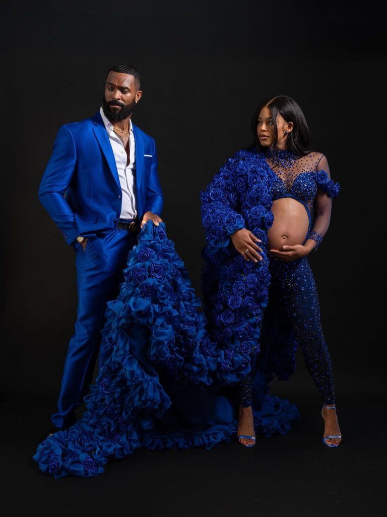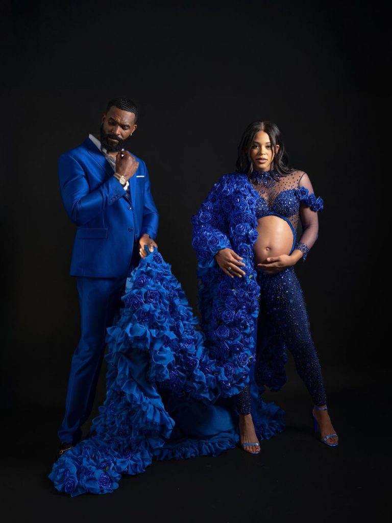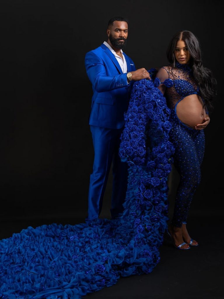 The Mother and Father to be sported matching Regal Blue custom pieces in a beautiful showcase of Bianca’s baby bump.