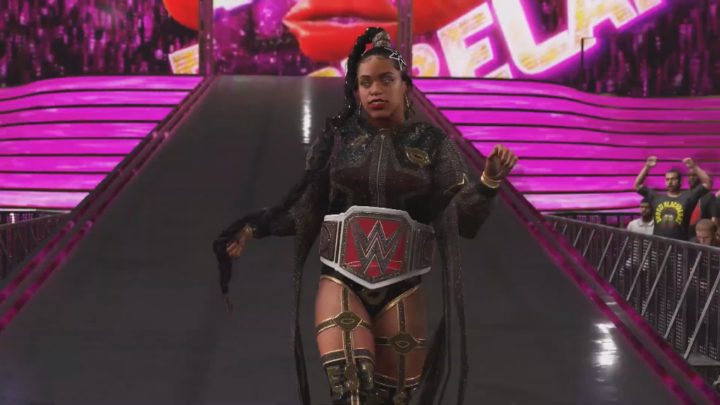 The trailer then shifts focus to the Women’s division and what appears to be a look at the Immortals showcase mode as Asuka and Bianca Belair clash in a recreation of their match also from WrestleMania 39. Both women can be seen with 2K recreations of their attires from the event and although we can’t fully see Asuka’s model it seems to be a perfect recreation of her look from WrestleMania Night 2.