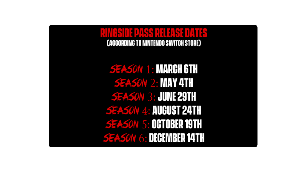 According to the Switch Store season 1 arrives at Launch on March 6th with Season 2 taking place on May 4th. Season 3 then takes place on June 29th, with Season 4 arriving on August 24th. Season 5 is set to release on October 19th, with the final season taking place December 14th. Remember these dates could change like last year’s DLC but these at least give an impression of how long content will last for WWE 2K26. I quite enjoyed having the content spread out over the year as it kept be tuned into the series.